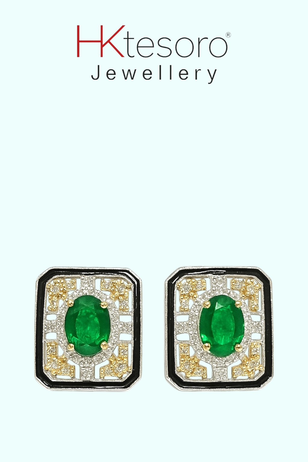 SKU – T013 925 Sterling Silver Dual Tone Glamour Synthetic Emerald Diamond Style Tops