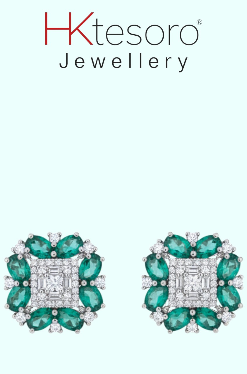 SKU -T064 925 Sterling Silver Emerald Crown Studs by HK Tesoro