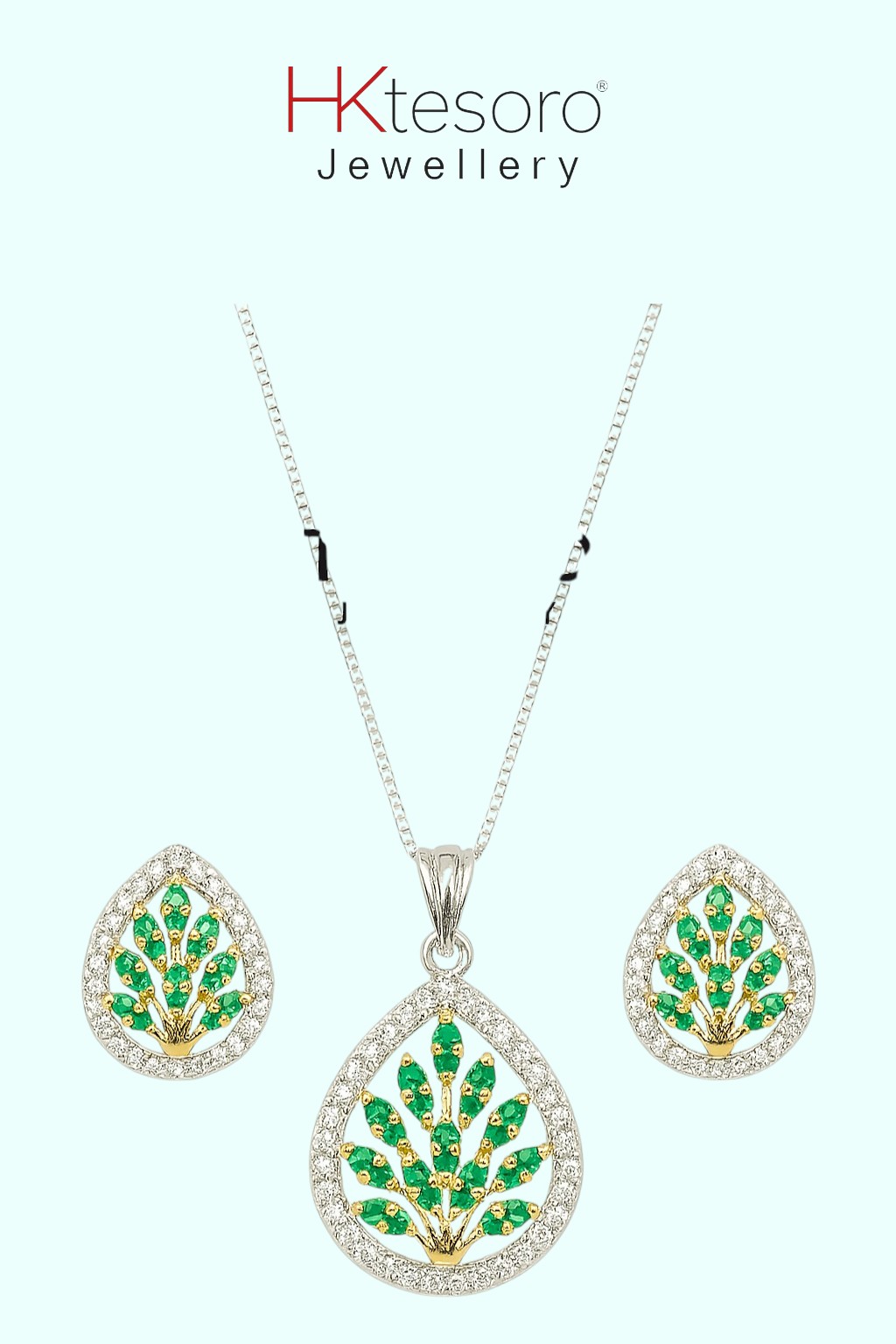 SKU – PS027 925 Sterling Silver Emerald Grove Pendant Set