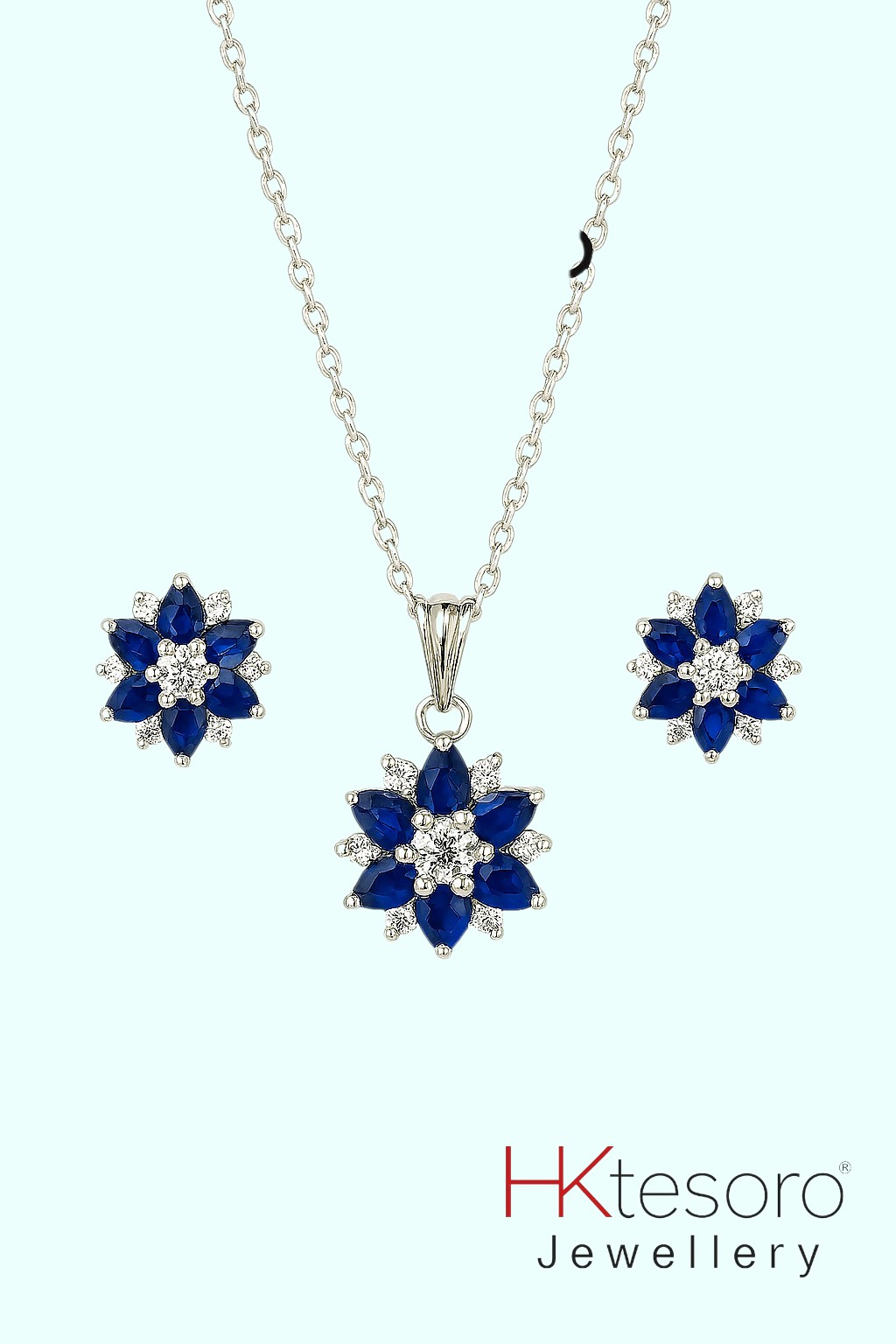 SKU – PS029 925 Sterling Silver Blue Petal Charm Pendant Set