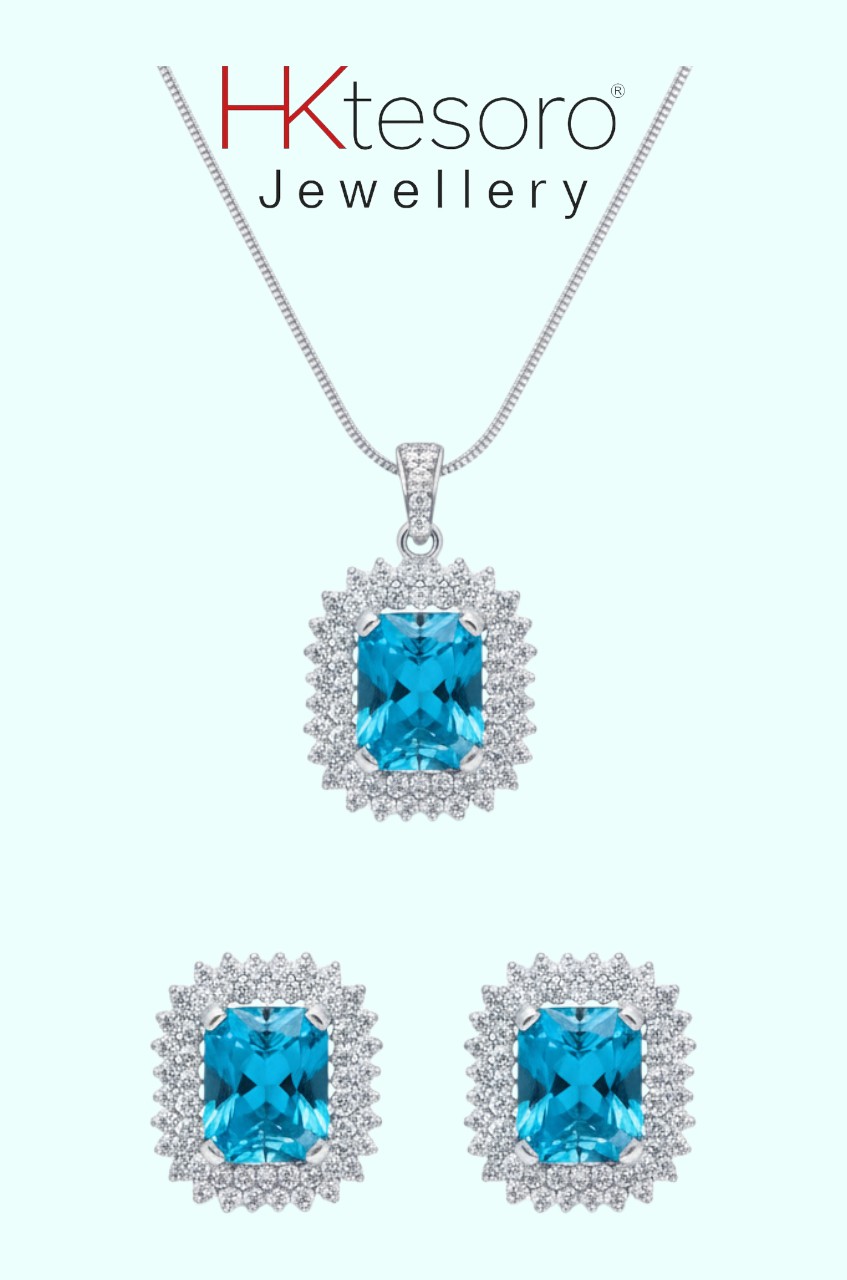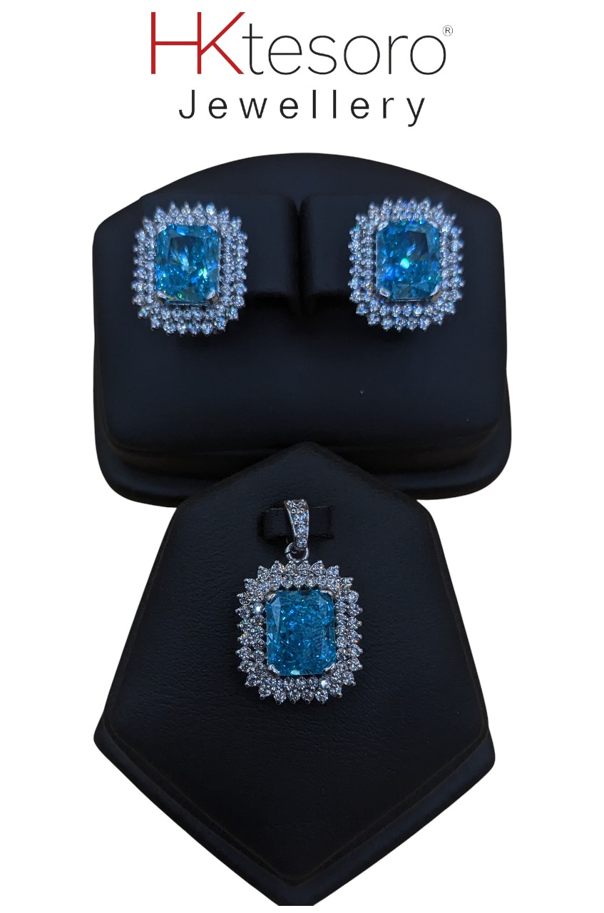 SKU – PS059 HKtesoro Blue Stone Stud Tops and Pendant Set